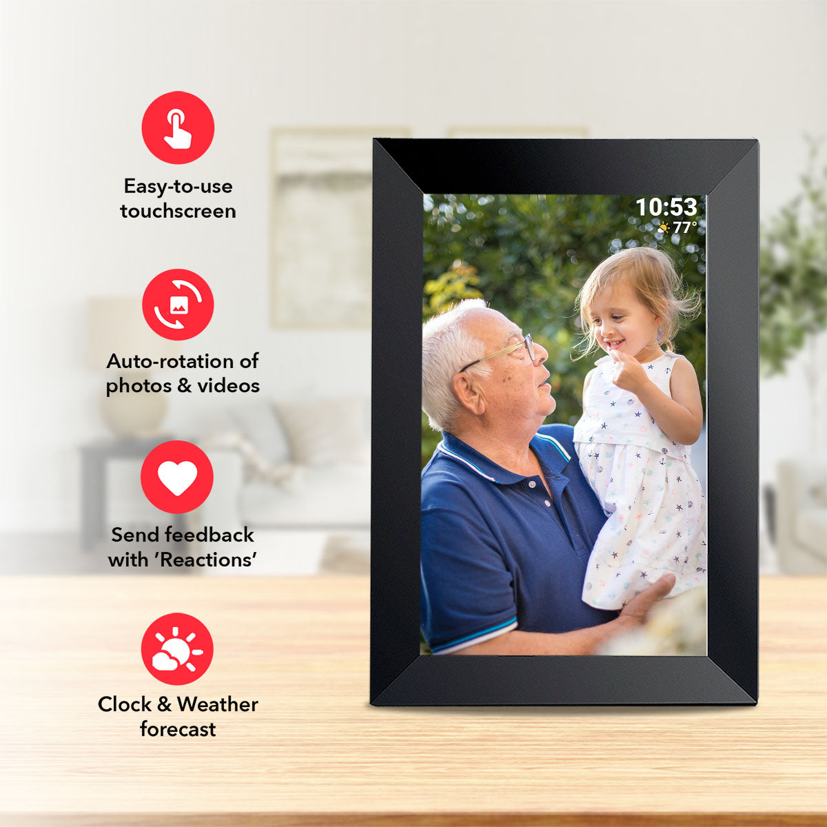 - Interactive touch-screen frame allows you to scroll through the photos/videos with ease