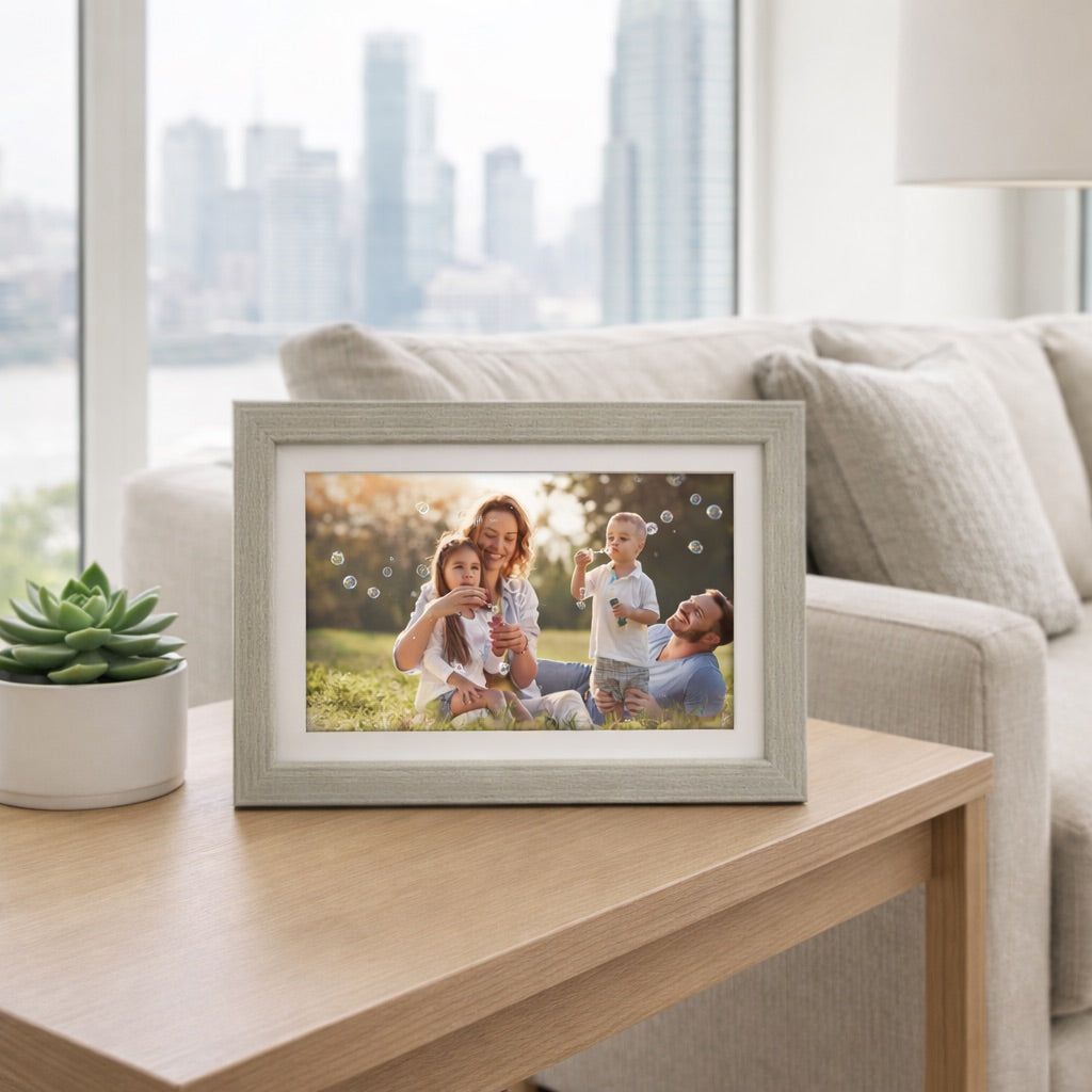 Sleek and modern 10.1” digital picture frame allows anyone to effortlessly upload their favorite images and videos from anywhere in the world via a free app. With its high-resolution display, your memories will come to life in stunning clarity and detail. Whether you're showcasing family photos, vacation snapshots, or artistic creations, this picture frame is the ideal way to display and share your cherished moments.